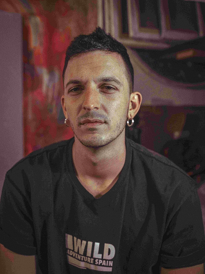 Aus der Welt des Graffitis kommend, findet er Schönheit in marginalen urbanen Räumen und im Alltag und fängt scheinbar einfache Momente mit einer unverwechselbaren Sensibilität ein. Sein kreativer Prozess beginnt mit einem Farbspritzer, inspiriert von einem mit seinem Handy aufgenommenen Foto, und verwandelt das Abstrakte in Figürliches.
